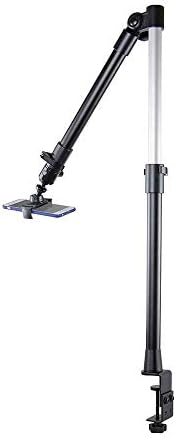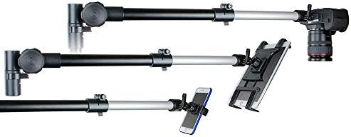 Create high-quality overhead or front-facing videos and photos with the Clamp Stand for DSLR Camera, Tablet, or Phone. The flexible design of this unique clamp stand allows you to easily switch out its device holder to use a DSLR camera, tablet, or phone interchangeably. DSLR camera attachment, and tablet and phone holders included! The Clamp Stand for DSLR Camera, Tablet, or Phone can be used by photographers, videographers, vloggers, bloggers, creators, and nail artists. The Clamp Stand for DSLR Camera, Tablet, or Phone includes a clamp stand with telescoping arm and base, camera attachment, tablet holder, and phone holder (Tablets, cameras, and phones not included). Use the Clamp Stand for DSLR Camera, Tablet, or Phone with your DSLR camera to create high-quality overhead or front-facing photos. Or, use the included tablet or phone holders to shoot videos or photos. Arkon’s Mobile Grip 5 phone holder securely fits phones up to 3.9 inches wide, including Apple iPhone 12 Pro Max, iPhone 12 Pro, iPhone 12, iPhone 12 mini, iPhone 11 Pro Max, iPhone 11 Pro, iPhone 11, iPhone XS Max, iPhone XS, iPhone XR, iPhone X, Samsung Galaxy Note 20, Note 10, and Note 9, Galaxy S20, S10, and S9, and LG G7, G6, and G5. The Slim-Grip Universal Tablet holder fits tablets 7 to 18.4 inches in screen size, including iPad Pro, iPad, and iPad mini. The heavy-duty clamp adjusts to fit tables, desks, and other surfaces up to 5.12 inches thick. With base and arm extended, the mount measures up to 29.5 inches tall from clamp base to hinge, and extends out to 27.75 inches. Without the base and arm extended, the mount measures 18.25 inches tall from its clamp base to the center hinge, and extends out 19 inches for unobstructed views.