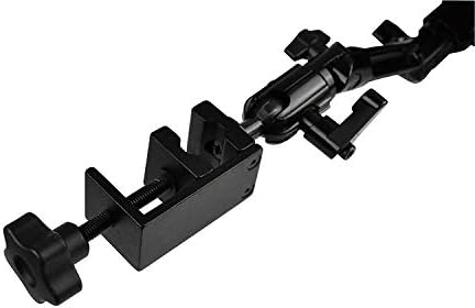 4WAY Adjustable aluminum Interchangeable arm (Adjust arm length from from 6 to to 10inches) / 360° Rotation Lock C-clamp (YES, 4 WAY Adjustment to maximize your viewing) Aluminum Alloy construction Clamp Mount: lightweight and strong **HEAVY DUTY TO withstand heavy use**