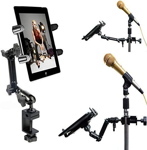 ChargerCity Heavy Duty Aluminum Alloy Music Mic Clamp Mount w/ Universal 7″ to 12″ Screen Size Tablet Holder.