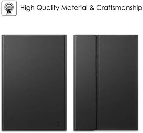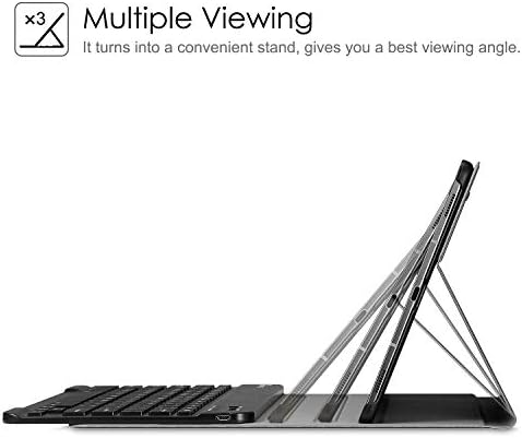 This case comes with a detachable bluetooth keyboard that seamlessly connects with the tablet for a quicker and more comfortable typing. A spring mechanism underneath each key ensures a tactile response with every stroke, helping you to type faster and with less error than on a touchscreen. Smart slim design adds maximum protection with minimal bulk (0.38 in). Find the angle in landscape mode just right for you with the adjustable stand that customizes to your personal viewing preference. All features of the tablet are accessible even with the case on. This versatile and protective case from Fintie features a removable keyboard that lets you switch between work and play with ease anywhere you use your tab.