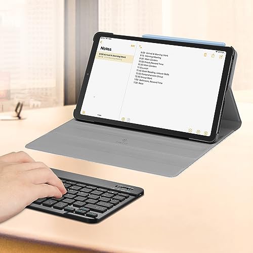 【Long-Lasting Battery & Magnetically Removable Keyboard】Bluetooth Low Energy 5.0 Technology ensure that the keyboard can provide up to 230 hours uninterrupted usage. Magnetically detachable Slim 7mm and light weight bluetooth keyboard with 10M range. Smart slim design adds maximum protection with minimal bulk (0.38 in)