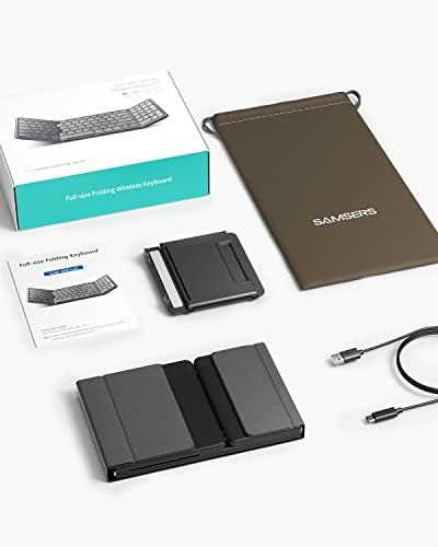 【Little Things & Big Convenience】 Samsers portable folding keyboard, only 9.3 ounces. Palm-sized keyboard can be folded up magnetically and put in your briefcase without taking up much space. Maximum convenience for you with minimum weight and size! Comes with a free stand and a velvet storage bag, the perfect companion for a folding keyboard. Not just a keyboard, but a travel solution!