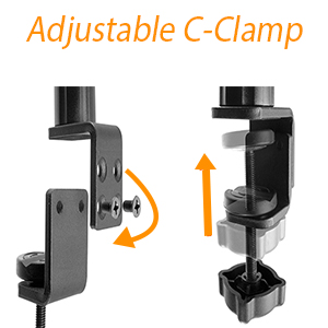 Features an adjustable tablet holder, Heavy-Duty C-Clamp Base, and simple assembly….