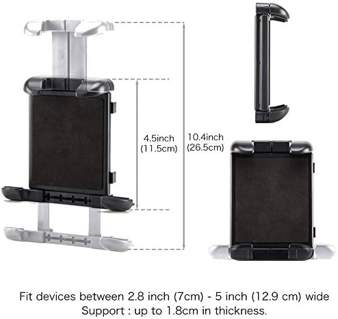 ADJUST & ROTATE: 360 degree swivel ball joint allows customized and ideal viewing angle. For Tablets and Smartphones 4.5inch (minimum) to 10inch (maximum) wide, inserted by length or height. Supports thickness up to 1.8cm.