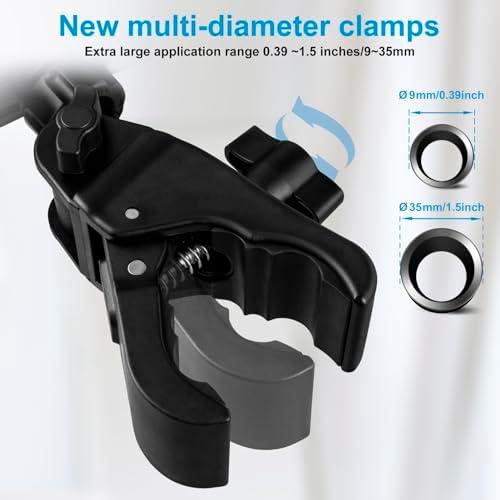 LZSIG upgraded and widened base clamp, with (⌀0.39″-1.5″ / 9-35mm) super wide range, allowing wider contact with stems/tubes/handlebars. Combined with anti-slip rubber cushions, it ensures a tighter grip and optimal load-bearing capacity. You no longer have to worry about dropping your valuable equipment!
