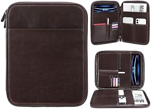 MoKo 9-11 Inch Tablet Sleeve Bag Compatible with iPad 10th Gen. 10.9″ 2022, iPad Pro 11″ 2021/2022, iPad Air 4/5th Gen. 10.9″ 2020/2022, PU Leather with Multiple Compartments, Dark Brown