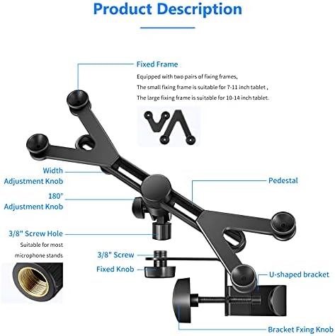 Neewer 7-14 inches Adjustable Tablet Holder Mount with 360 Degree Swivel Clamp for Connecting with Microphone Stand, Compatible with iPad, iPad Pro, iPad Air, Google Nexus Samsung Galaxy