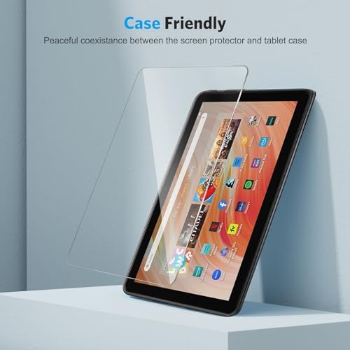 Case Friendly: This Fire 10 tablets tempered glass screen protector is designed to be compatible with most tablet cases.