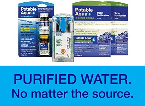 Potable Aqua Germicidal Water Purifier Tablets are essential for any outdoor adventurer. These travel water purification tablets make questionable water bacteriologically suitable to drink, even in emergency water purification situations. Add 2 water purification tablets for drinking water to 1 quart (1 liter) of water and cap loosely to allow a small amount of leakage. After 5 minutes, shake container to allow screw threads to be moistened, then tighten cap. Allow 30 minutes for the tablets to disinfect water for safe drinking. These water purification tablets are effective against Giardia lamblia when used as directed. When it comes to water safety and emergency preparedness and water purification for camping, Potable Aqua is a trusted name in water treatment for drinking water. Use this portable water treatment for travel and disaster preparedness as directed on the label.