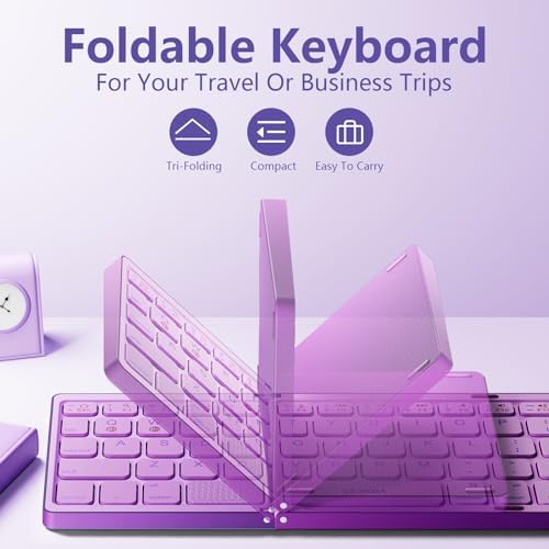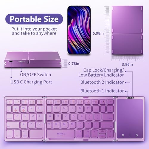 【Portable Bluetooth Keyboard】Dual Bluetooth 5.1 channels for seamless switching between two devices, portable keyboard for laptop is universally compatible with Mac, iPad, iPhone, cellphones, laptops, tablets, PCs, and more. Compatible with Windows 7/8/10 or later, Mac OS X 10.10 or later, and Android 4.3 or later.
