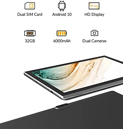 Tablet 10.1 inch, Android 10 3G Phone Tablets, Dual SIM Card, 32 GB Storage, Quad-Core Processor, 8MP Camera, 10.1″ IPS HD Display, Wi-Fi, USB Type C Port, GPS, Black