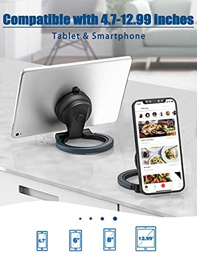 【DESKTOP HOLDER & WALL MOUNT】 The 2-in-1 kitchen mount stand fit 4.7-13 inches phones and tablets. The tablets holder mount features a mounting base which allows you to use it free-standing on your desk or mounts on a wall or cabinet using the base. Ideal for following a recipe to cooking, makes a video phone/ tablet calls, watching your favorite shows, do exercising.