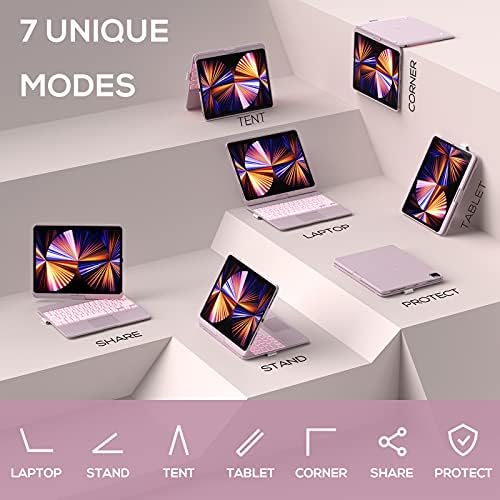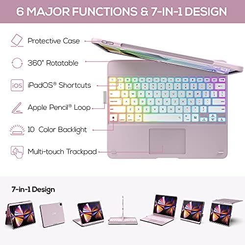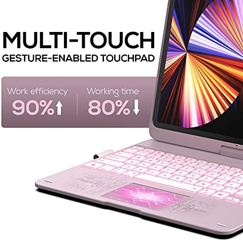 Typecase Touch iPad Pro 12.9 2021 Case with Keyboard & Trackpad, Magic Keyboard Style, Smart Backlit Keys, 360 Rotatable Keyboard for iPad Pro 12.9 (2018-2021), Compatible with Apple Pencil (Pink)