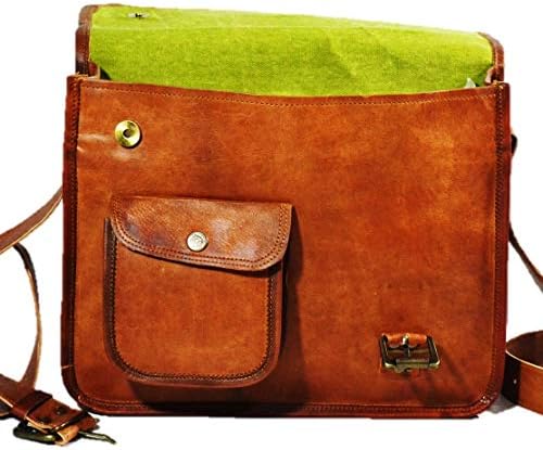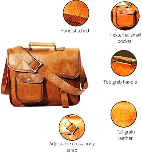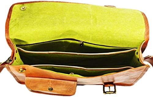 PREMIUM QUALITY: Imported, High quality soft genuine leather LIGHT WEIGHT, Hand-made, has a unique design, rugged attractive look with antique brass metal buckle accessories carry rich dark brown color. The bags have dedicated padded under lining for safety of electronics .