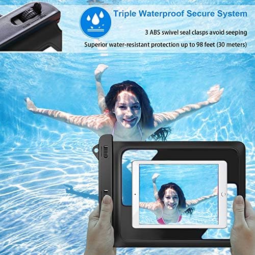 Secure IPX8 Waterproof Case – Superior Lightweight Polyvinyl chloride (PVC) casing with 3 swivel locks and sealable closure clips safeguard your iPad Mini/Samsung Tab A 8.0 device and valuable from all kinds of harsh environments against water, oil and dirt.